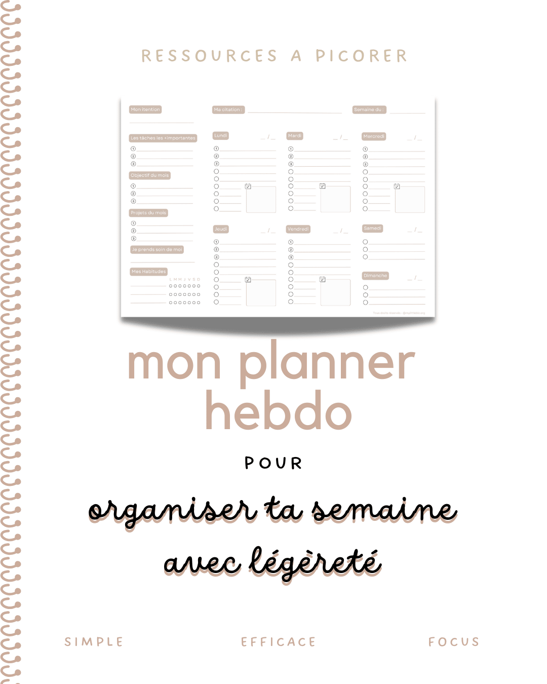 Découvre mon planner hebdo, à imprimer pour transformer tes semaines et tes journées en une expérience fluide, zen et de productive.